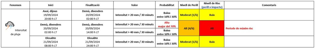 Este riesgo se concentra sobre todo durante la jornada de este viernes 20 de septiembre (de 2 a 14 horas).