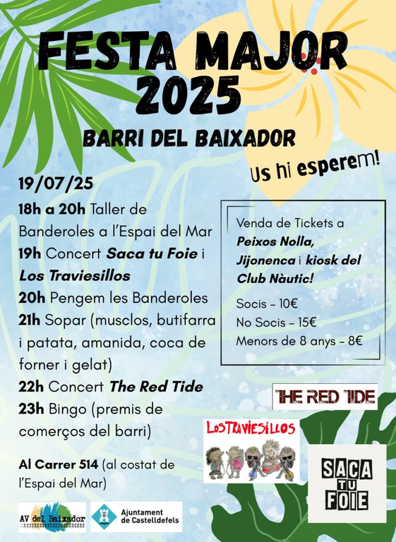 El próximo sábado 19 de julio, el Barrio del Baixador de Castelldefels acogerá su tradicional fiesta de verano, una jornada llena de actividades pensadas para todos los públicos que convertirá la calle 514, junto al Espai del Mar, en el epicentro de la celebración vecinal.