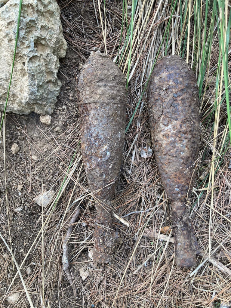 Por último, este lunes 31 de octubre, alrededor de las 11:30 h, se volvieron a encontrar en un terreno rural de Castelldefels dos artefactos de bombas de mortero completamente oxidadas.