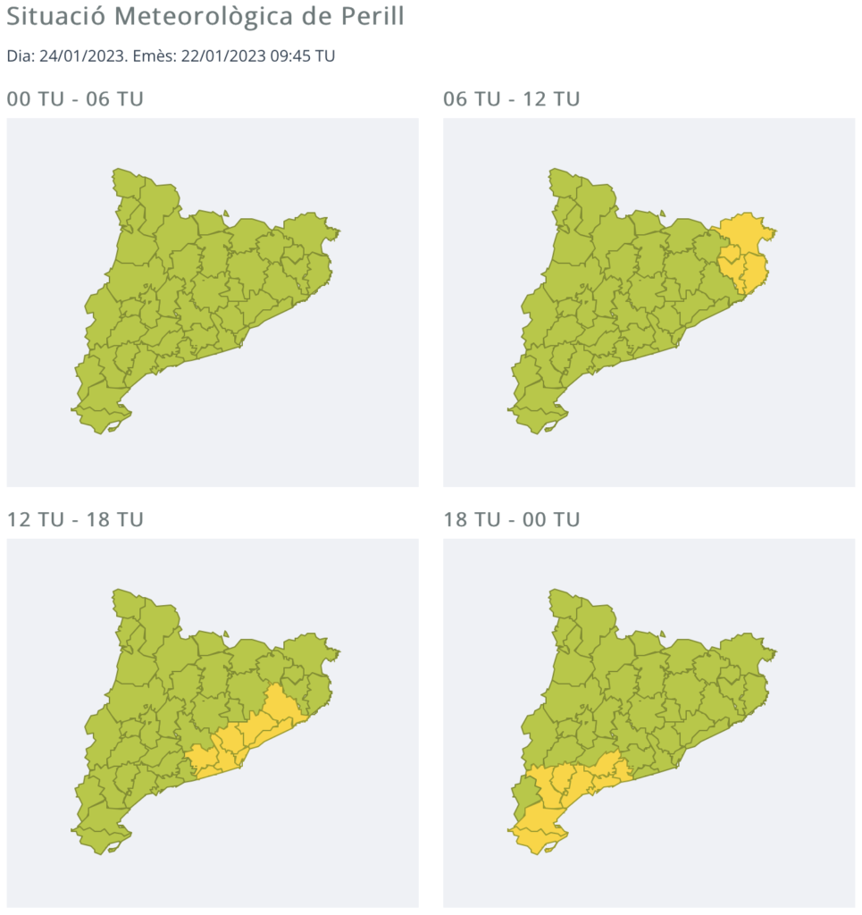 El Servicio Meteorológico de Catalunya (Meteocat) ha activado la alerta amarilla por nieve en todas las comarcas de costa de Catalunya, incluido el Baix Llobregat con Castelldefels, para el próximo martes (24 de enero).