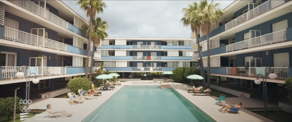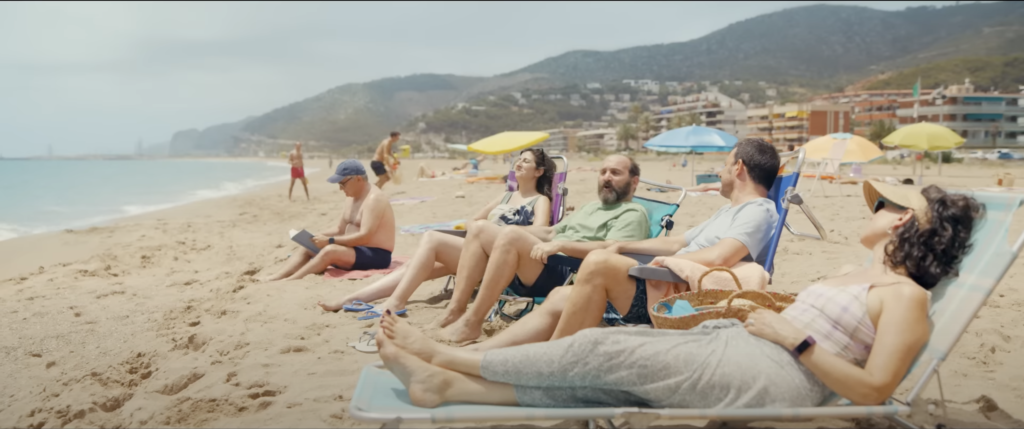 Y también, como no, la inconfundible playa con el Port Ginesta y el macizo del Garraf de fondo.